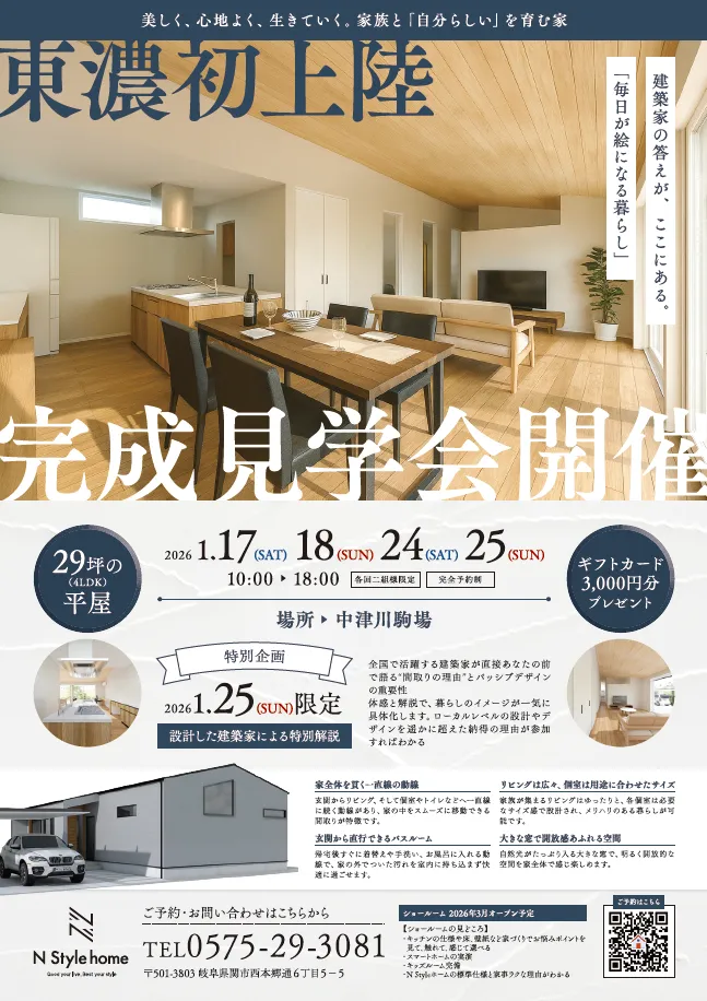 「毎日が絵になる暮らし」29坪の平屋完成見学会開催! in中津川市